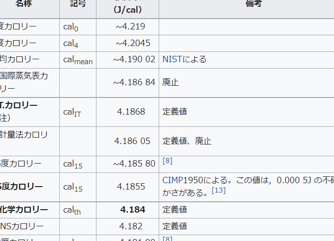 - カロリー: 食品のエネルギーを示し、主に栄養学で利用される。