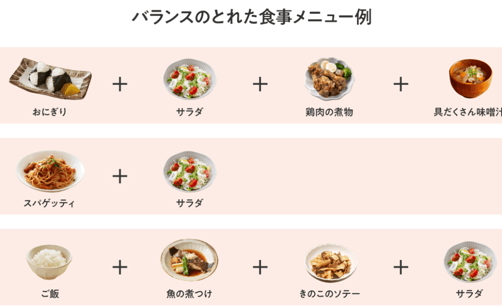 バランスの取れた食事は、以下のような食材を含むことが望ましいです。