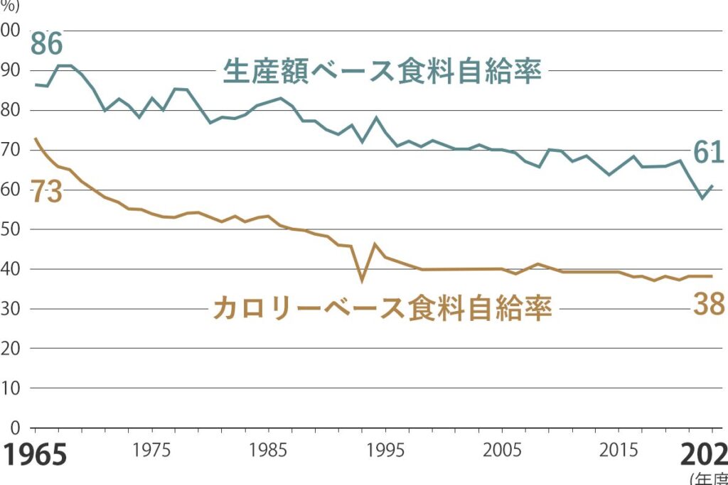 日本の食料自給率は、我々の栄養と経済に直接影響する重要な指標だ。最近の傾向を見れば、食料自給率のカロリーベースは改善の兆しが見られない。こうした現状を理解するために、詳しく見ていこう。