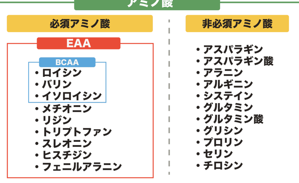 EAA(必須アミノ酸)は、私たちの体にとって重要な栄養素です。体内で合成できず、食事から摂取する必要があります。EAAの中には、筋肉の合成や回復に必要な成分が含まれています。