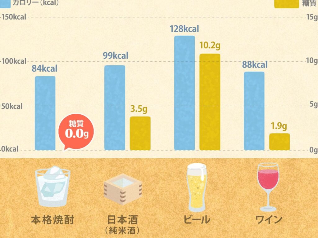 - 芋焼酎:約160〜170キロカロリー/100ミリリットル
