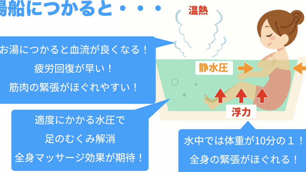 加えて、入浴時間が長くなるほどカロリー消費も増えることが分かっています。例えば、38度の湯に30分以上浸かると、100キロカロリーを超えることも珍しくありません。心地よくリラックスすることで、カルシウムの吸収も促進され、骨の健康が保たれます。
