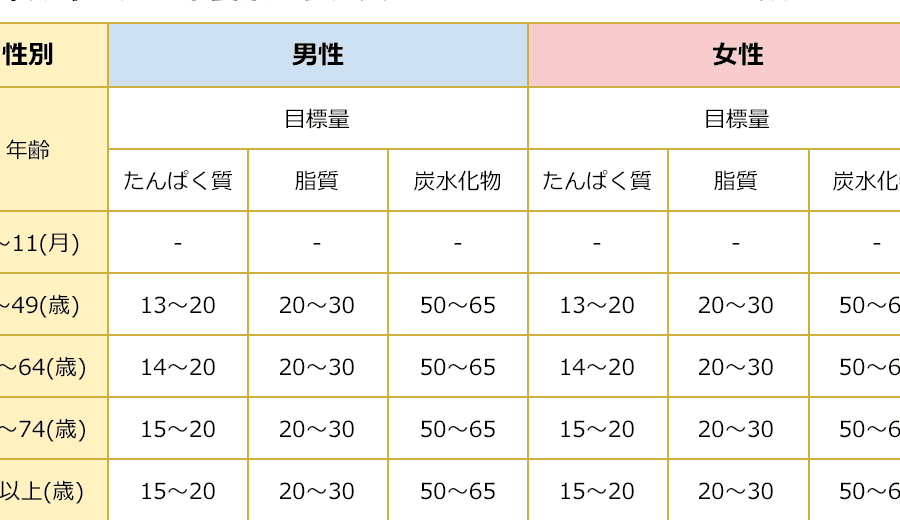 | 年齢層 | 男性 (カロリー) | 女性 (カロリー) |