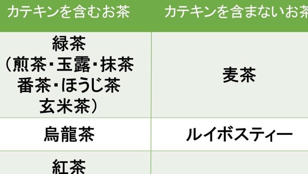 - 運動後、水分補給として最適です。カテキンが含まれ、疲労回復に効果的です。