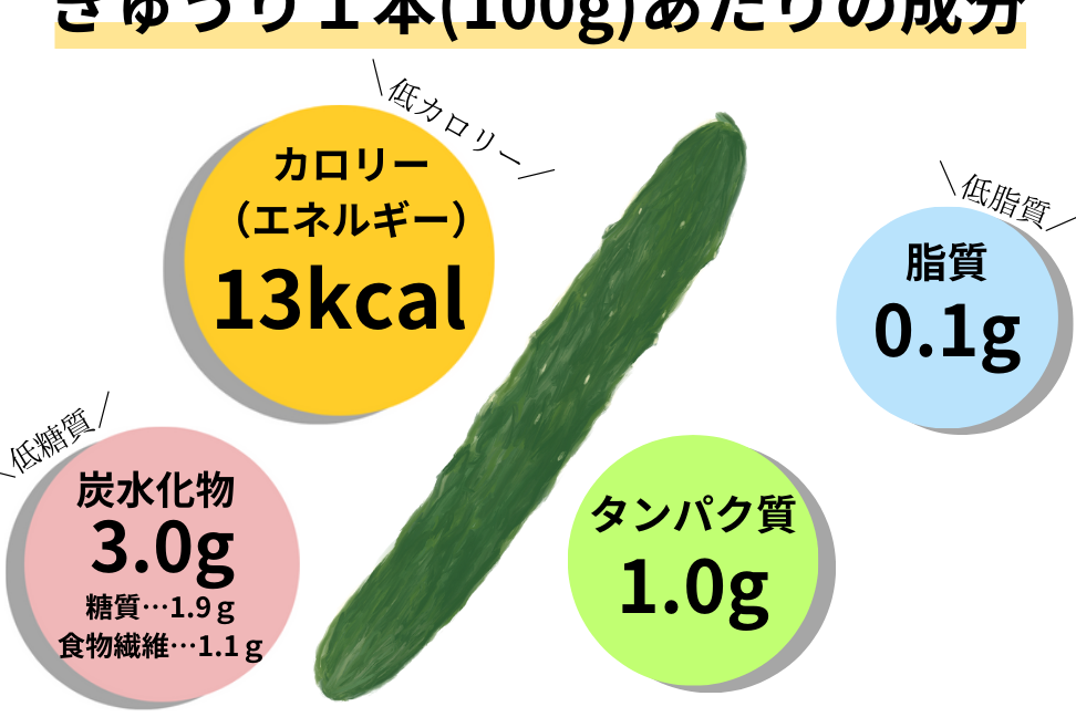 きゅうりには多くの栄養素が含まれています。主に以下の成分が豊富です。
