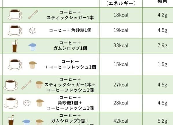 ミルクや砂糖を加えると、カロリーは大きく変動する。以下はその具体的な数値だ。