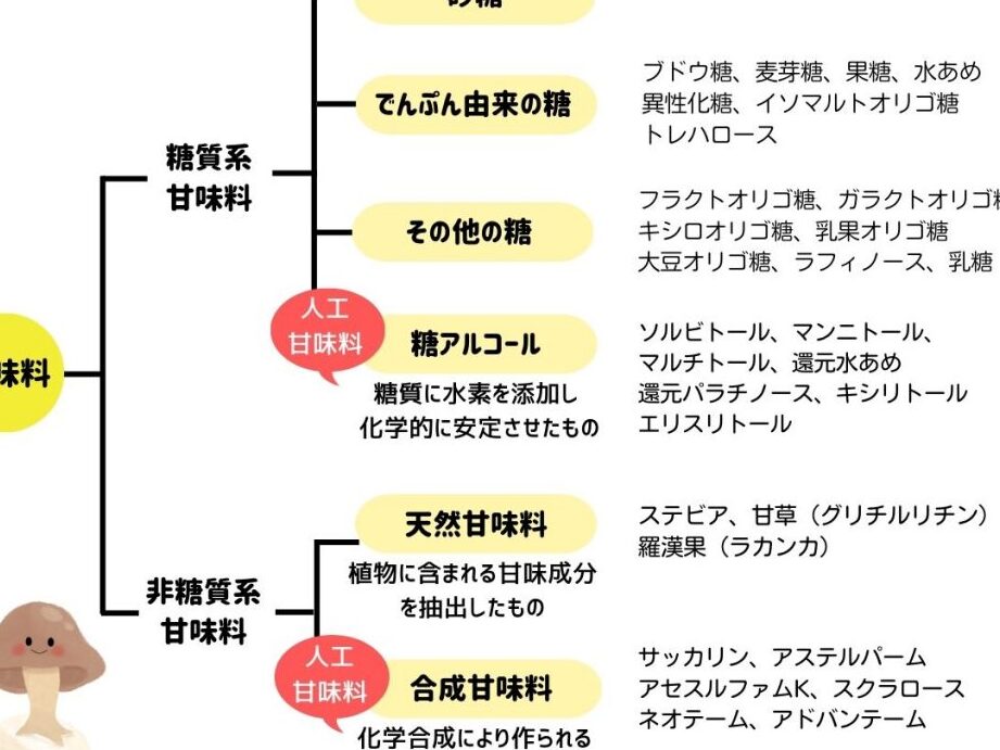 これらの成分は、私たちが糖分を摂取する際に求める甘さを実現します。そのため、カロリーを含まないか、非常に少ないとされます。